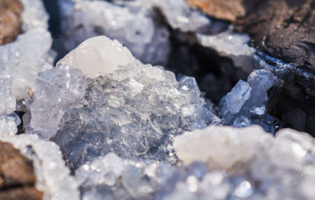 Beautiful texture of Blue crystals. mineral its blurred natural background. Winter Beautiful background. Macro.