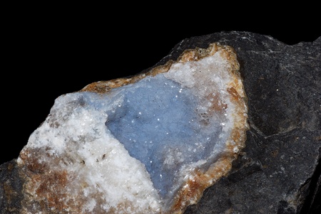 Celestine mineral stone in front of black