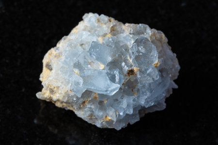 sample of rough celestine rock on black granite background close up