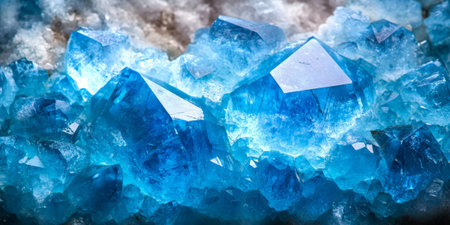 Blue Crystal Crystals Background. Macro Closeup of Crystal Crystals.