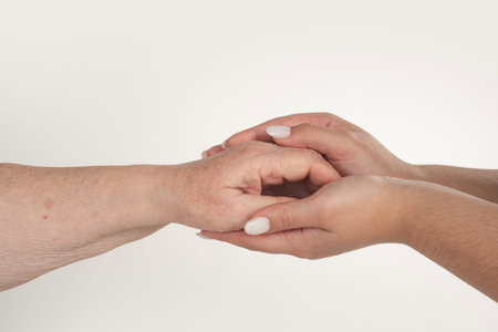 Clasped hands of an elderly woman and a young woman