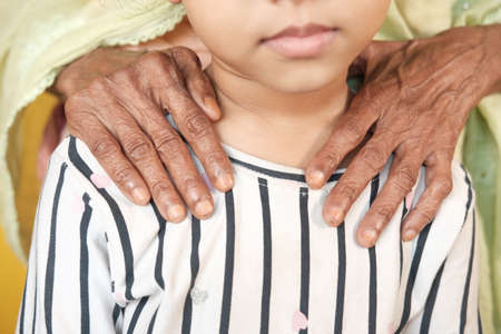 senior women putting her hands on childs shoulder