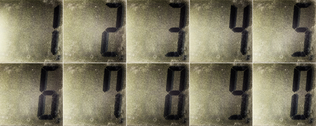 Old dusty calculator display showing set of numbers.