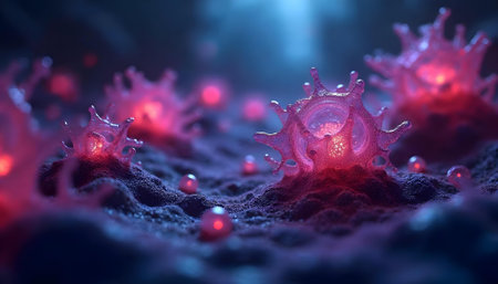 Colorful viruses engage with cells in a dynamic environment, highlighting their intricate interactions and potential impacts on health.