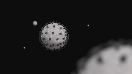 Grayscale minimalistic 3d illustration of viruses. Of the new Coronavirus also known as Covid 19 causing the 2020 pandemic.
