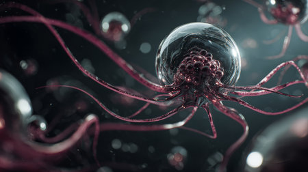 Microscopic cell nucleus tentacle biology science medical dark abstract mysterious closeup