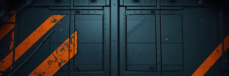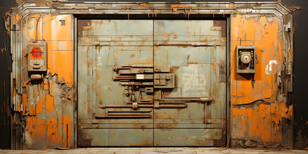 industrial bunker. massive metallic door and rusted walls background. Ai generated illustration