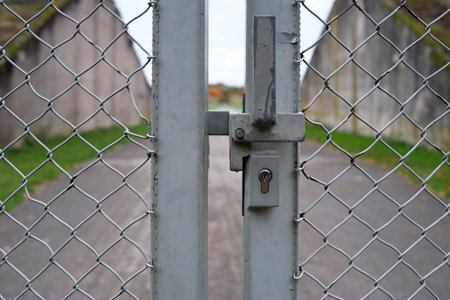 Closed and locked metal gate