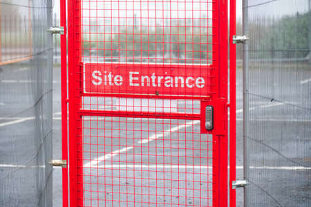 Construction building site sign at entrance on gate