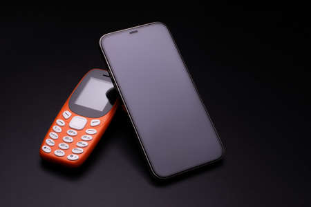 Old and new telephone on blackbackground. Evolving technologies