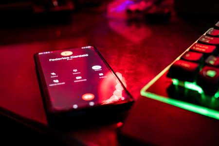 telephone. blue-red backlight cyberpunk photo