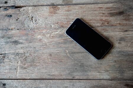 Smart phone on wooden background