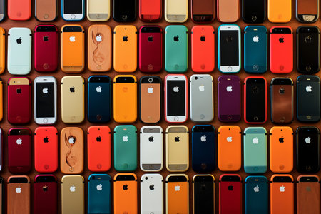 A vibrant collection of disassembled smartphone parts, showcasing colorful surfaces and textures, ideal for technology-themed projects or backgrounds.