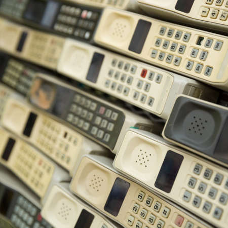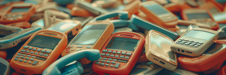 Pile of Old Mobile Phones Cell Phone Graveyard, Recycling and Waste Problem, Obsolete Technology