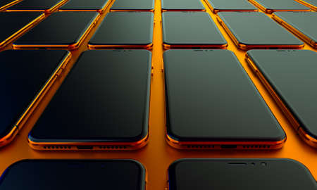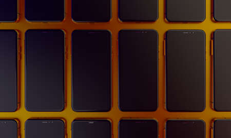 Phones on a yellow background. Communication and technology. Technological background. 3d rendering.