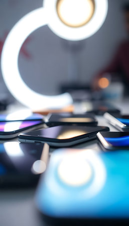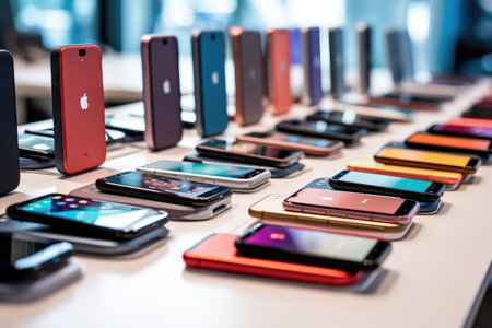Assorted mobile phones on table, perfect for tech, ad, sales, and marketing concepts