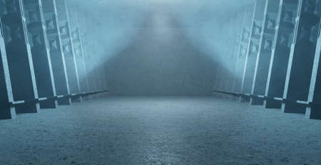 Abstract Scene Huge Virtual Showroom Club Hallway With Light And Smoke Light Blue Turquoise Background Wallpaper 3D Render