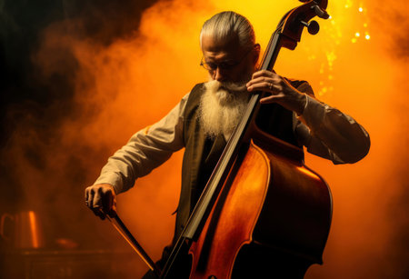 A man with a beard playing a cello. Generative AI image.
