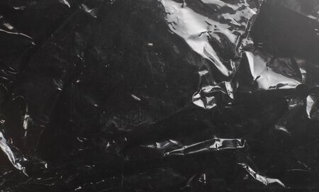 Crinkled Black Plastic Texture with Shiny Reflective Surface for Background or Overlay