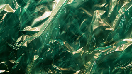 Crumpled Green Plastic Texture Background with Reflective Surface