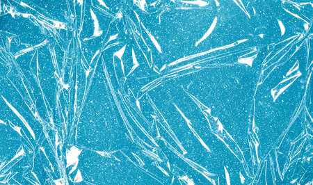 Glossy abstract background. Wrinkled texture. Creased transparent film on blue glitter surface.