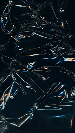 Abstract Crinkled Plastic Texture Background with Dark Highlights and Reflections