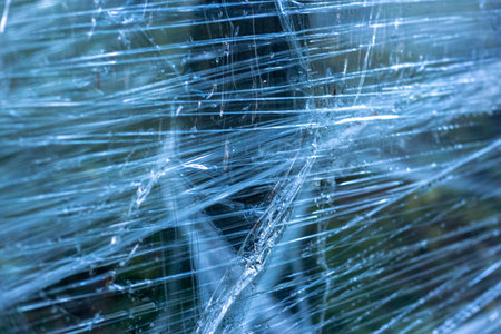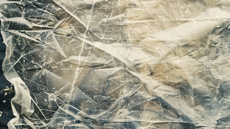 Crumpled clear plastic background, abstract glossy broken surface texture with creases