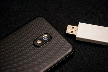 Hand phone with USB drive on black