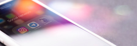 Diyarbakir, Turkey - October 04, 2021: Close-up social media icons on smartphone screen, instagram, facebook, twitter, whatsapp, telegram, beep
