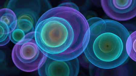 This mesmerizing image features vibrant abstract circles with luminous effects against a deep blue backdrop, embodying creativity and imagination for modern digital designs.