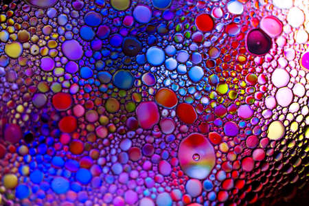 Liquid bubbles , macro bubbles in various colors, abstract backgrounds, oil beauty and science concept background