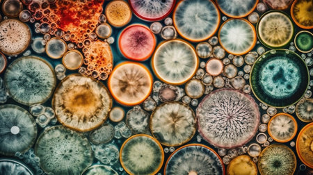 Colorful cell structures under microscopic view