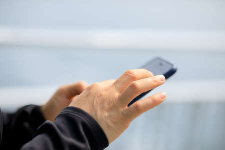 Closeup of Hand Using Mobile Phone. Cropped image. Selective Focus. Using Smartphone for Communication, Texting, Reading or Playing Game