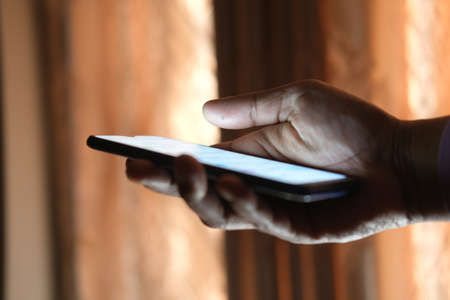 beautiful young african male hand using a mobile phone
