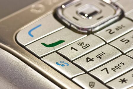 Closeup of buttons on mobile phone keyboard. Phone repair concept