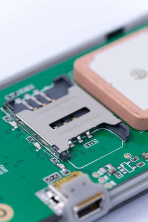 Disassembled digital device close-up macro shot, selective focus
