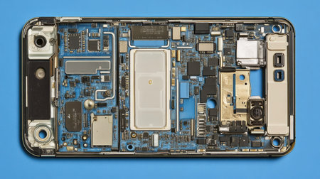Showcasing intricate smartphone components displayed on a flat surface for technology enthusiasts