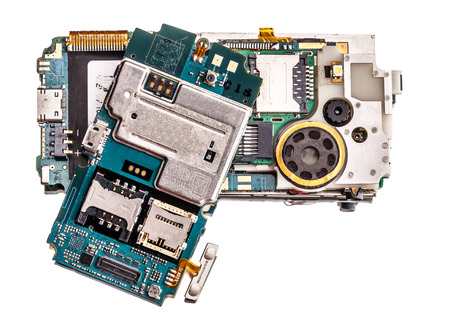 Disassembled cell phone. Isolated on white background.