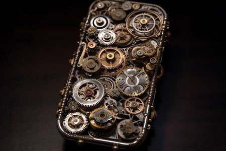 Intricate steampunk gadget with gears and brass detailing. That the image is generated using AI.