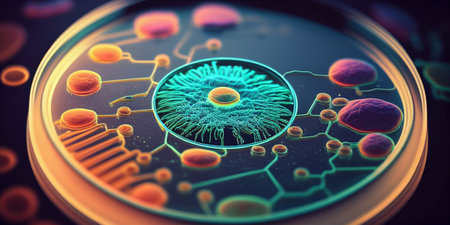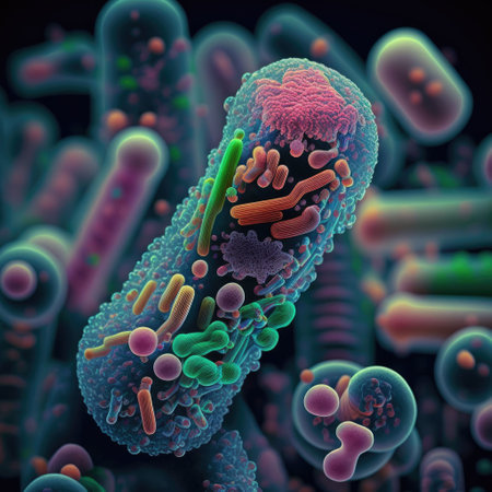 An AI generated illustration of a microscopic bacteria with small organisms inside