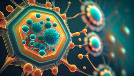 Microscopic World Glowing Bacteria or Organelles Abstract Cellular Background Illustration,