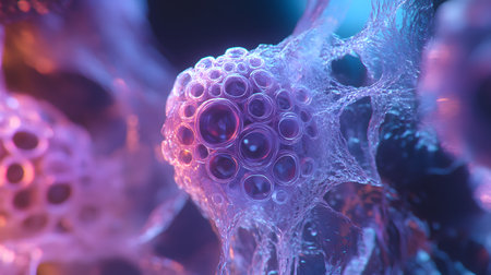 A Microscopic close-up view of a biological cellular structure, representing concepts of biology and medicine.