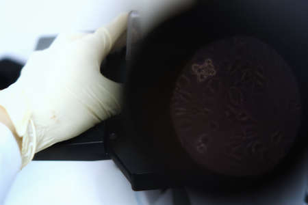 Researcher working with petri dish with bacteria in bacteriological laboratory. Concept of Pharmaceutical Development for Antibiotics, Curing Disease