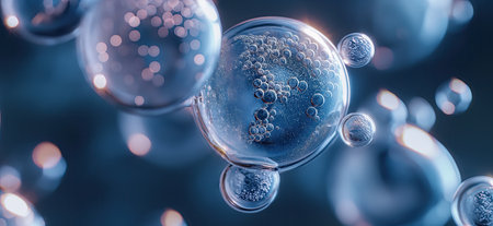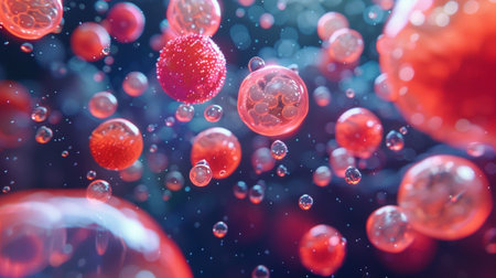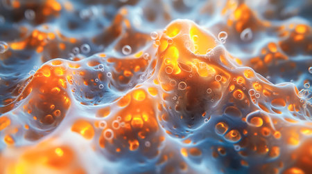 Explore a vibrant, abstract representation of cells and bubbles, showcasing intricate details in a microscopic setting, perfect for scientific and artistic themes.