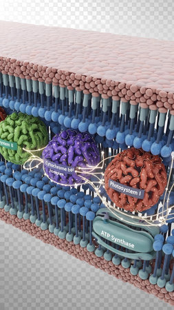 3D Realistic Illustration of Thylakoid Membrane and Protein Complexes