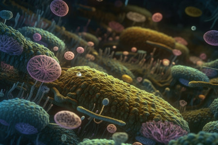 Colorful microorganism cells close up. illustration in high details for medical education and science. ai generative.