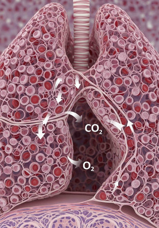 Lungs with CO2 CO2 CO2. 3D illustration.