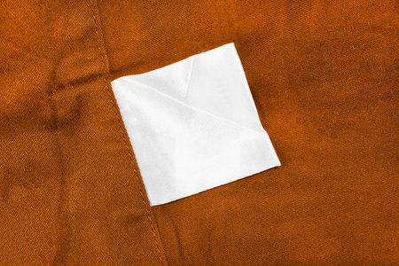 White blank clothes label on terracotta cotton as a background