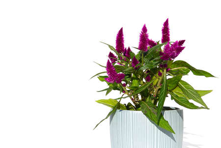 Potted Cockscomb celosia spicata plant isolated on white. Pink flower of celosia spicata is in the family Amaranthaceae, home tropical flower.
