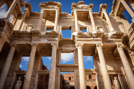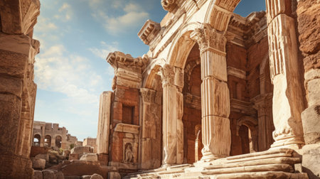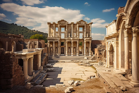 Ephesus: A captivating journey. Explore the library's wisdom, witness the drama of the Great Theater, and walk the marble streets where Roman history comes alive. AI-generated